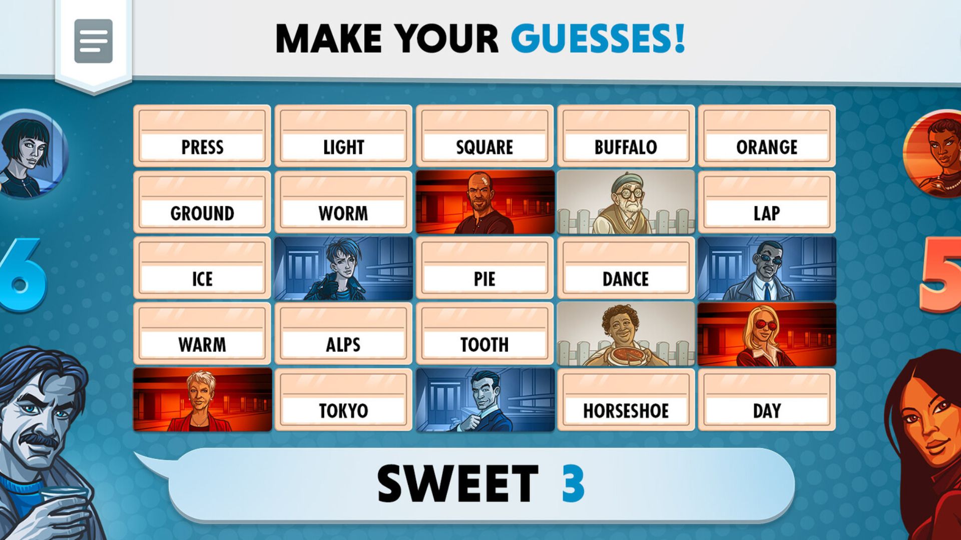 Lối chơi: Hai đội trưởng đưa ra gợi ý bằng một từ duy nhất để đồng đội tìm ra các mật mã phe mình. Đoán đúng thì thăng hoa, đoán sai trúng "Sát thủ" là thua trắng bụng.